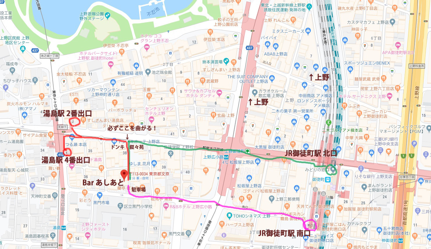※御徒町からのルートも北口と南口からの2ルートを記載していますので、わかり易そうな道を選んでおいでください。